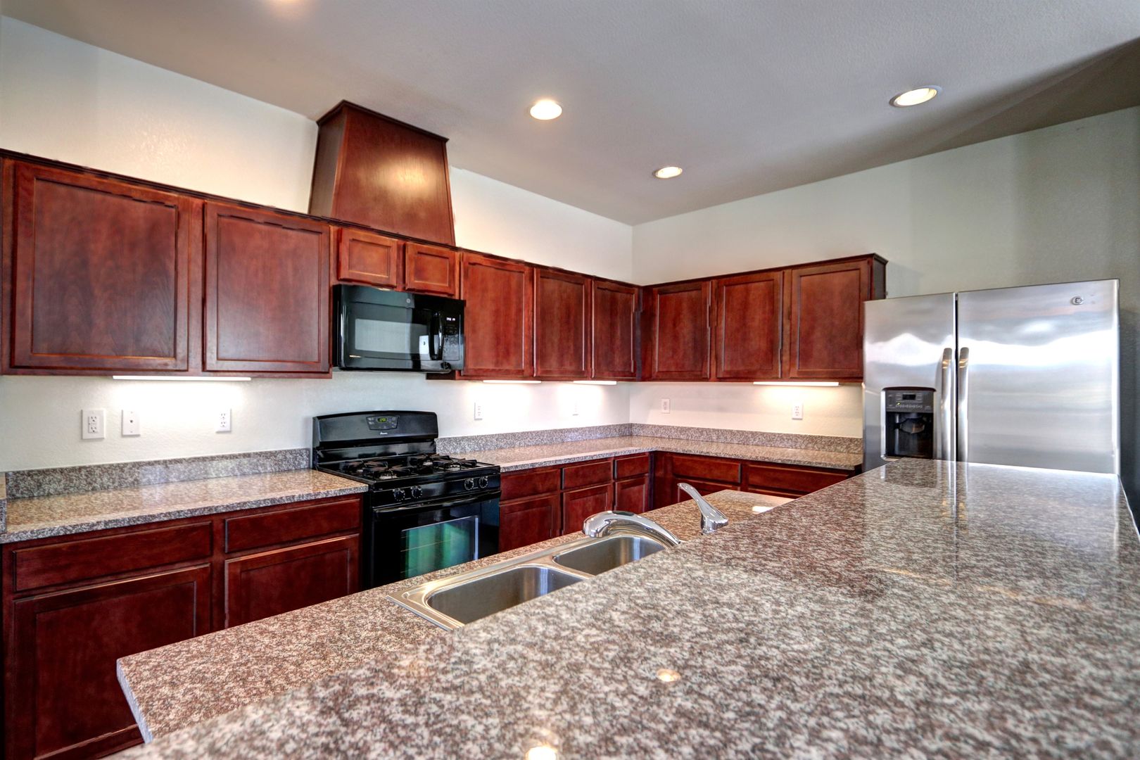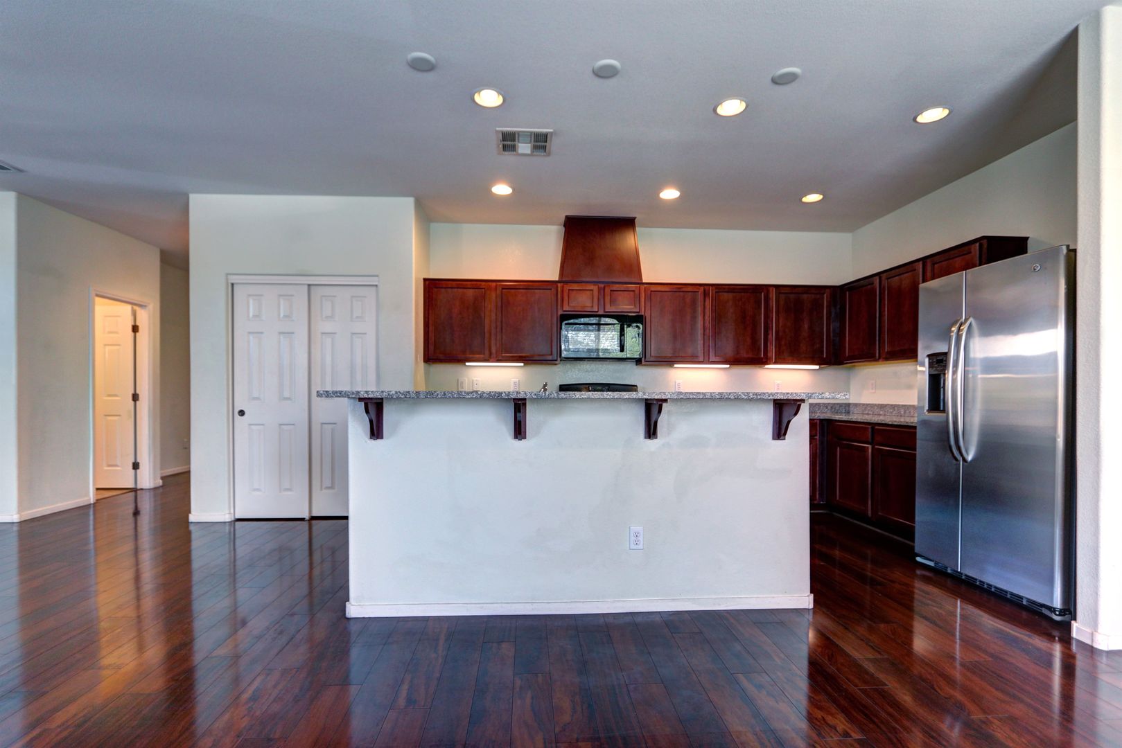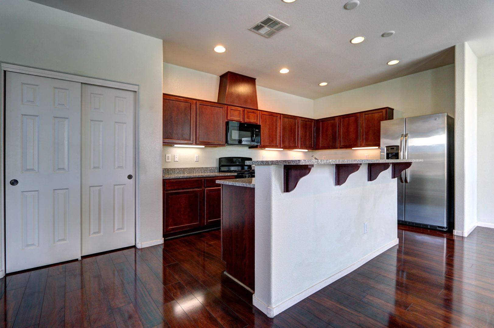 MODEL CONDITION NEWER HOME!! ALL WITH HARD WOOD FLOORS DOWNSTAIRS, NICE OPEN FLOORPLAN WITH FANTASTIC KITCHEN W/ BREAKFAST BAR SOLID SURFACE COUNTERS, GORGEOUS CHERRY CABINETS. HIGH END APPLIANCES. 1/2 BATH DOWN FOR YOUR GUESTS. RAISED PANEL DOORS. NICE BALCONY OFF MASTER BEDROOM, QUALITY TILE IN BATHROOMS. COVERED PATIO IN BACKYARD.