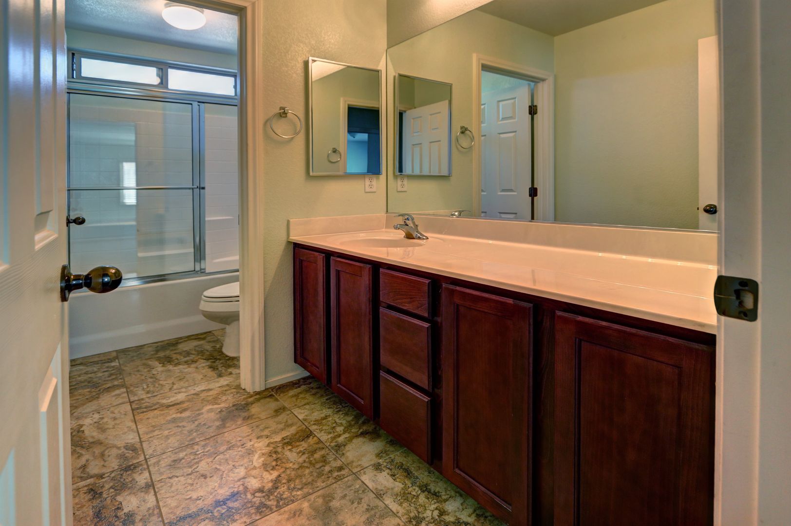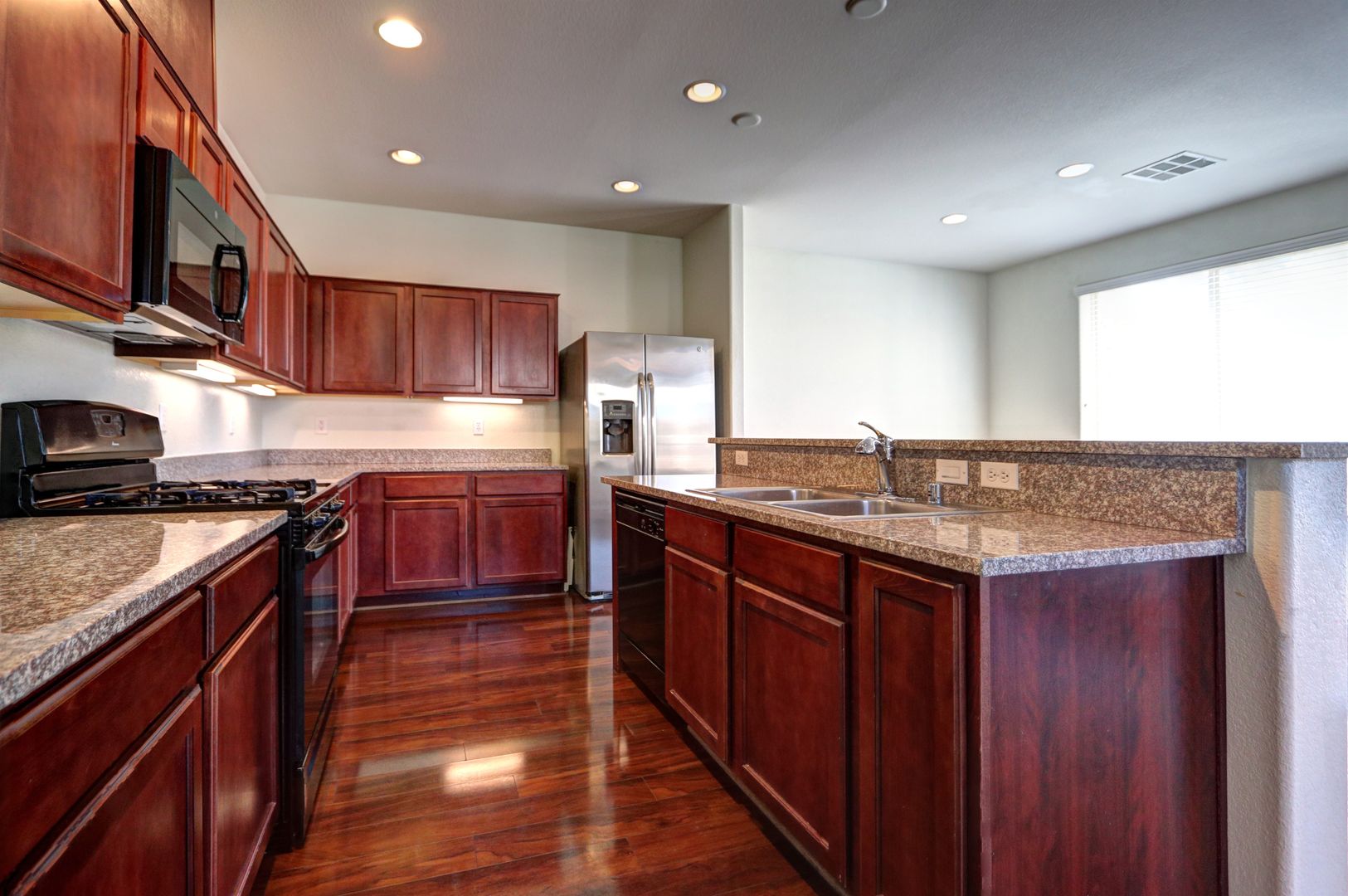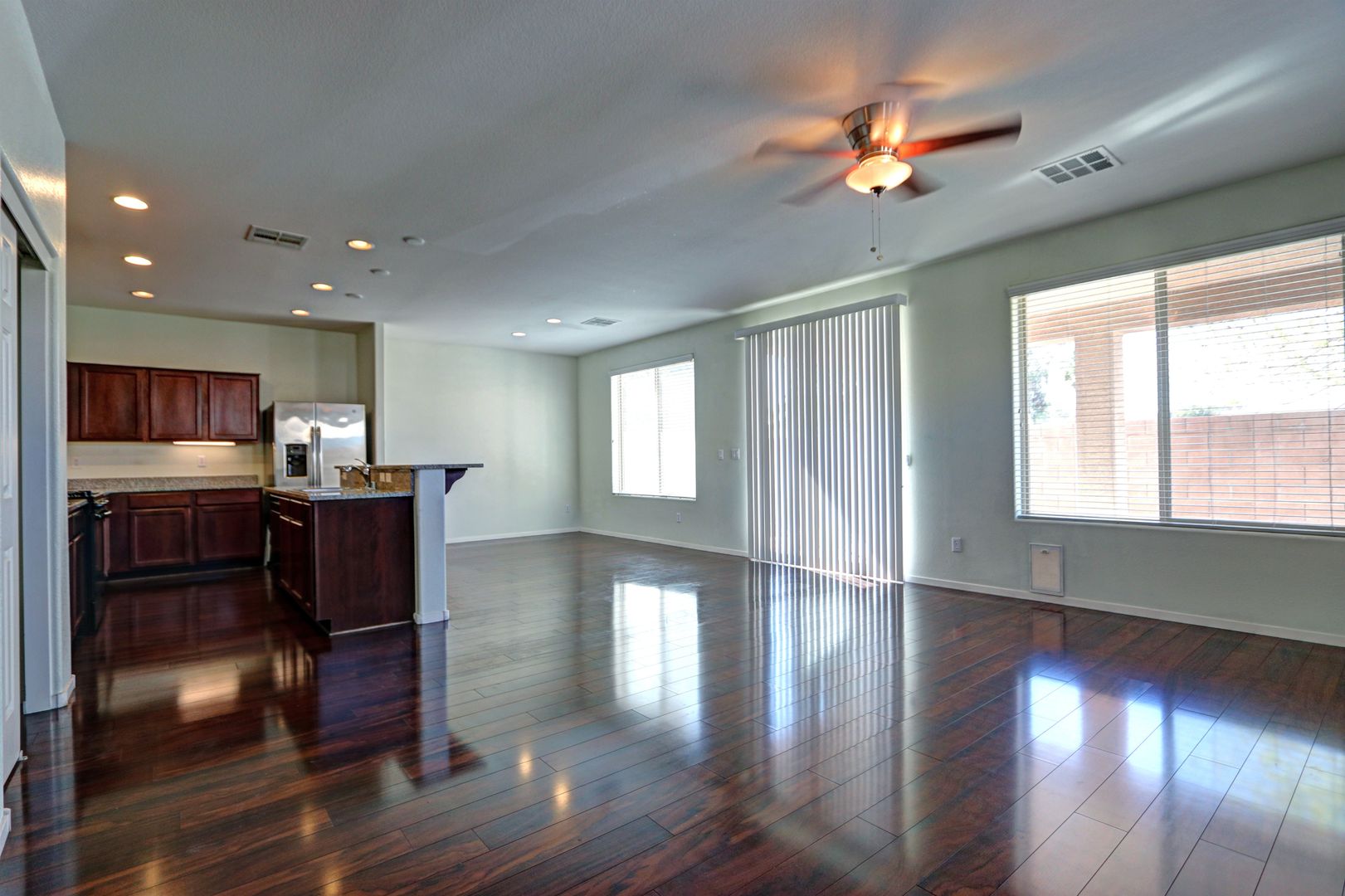 MODEL CONDITION NEWER HOME!! ALL WITH HARD WOOD FLOORS DOWNSTAIRS, NICE OPEN FLOORPLAN WITH FANTASTIC KITCHEN W/ BREAKFAST BAR SOLID SURFACE COUNTERS, GORGEOUS CHERRY CABINETS. HIGH END APPLIANCES. 1/2 BATH DOWN FOR YOUR GUESTS. RAISED PANEL DOORS. NICE BALCONY OFF MASTER BEDROOM, QUALITY TILE IN BATHROOMS. COVERED PATIO IN BACKYARD.