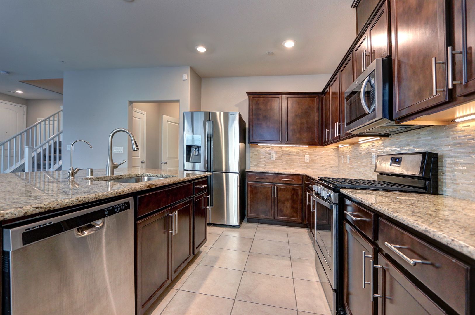 LOVELY IMMACULATE TOWN-HOME WITH SO MANY UPGRADES IN FANTASTIC INSPARADA!! ALL CERAMIC TILE DOWNSTAIRS, LARGE OPEN FLOOR PLAN, KITCHEN IS HIGHLY UPGRADED WITH BIG GRANITE BREAKFAST BAR, CUSTOM CABINETS, CUSTOM BACK SPLASH. UPSTAIRS OFFERS A LARGE MASTER SUITE WITH WALK IN CLOSET, OVERSIZE SHOWER, DOUBLE SINKS. LOFT IS A NICE SIZE AND IS PERFECT FOR A GAME ROOM OR OFFICE. ALL ROOMS HAVE CEILING FANS. WONDERFUL COMMUNITY WITH POOLS, PARKS, COMMUNITY ACTIVITIES AND SO MUCH MORE. CLOSE TO SHOPPING, SCHOOLS ARE FREEWAY!