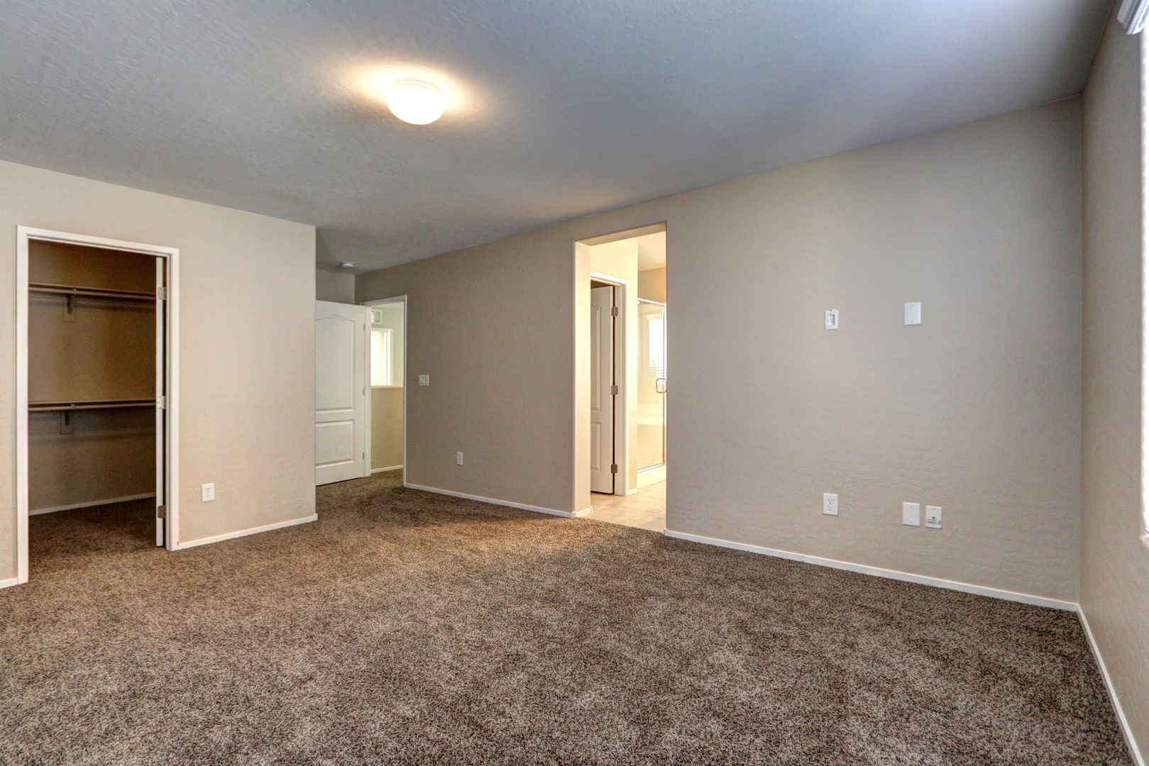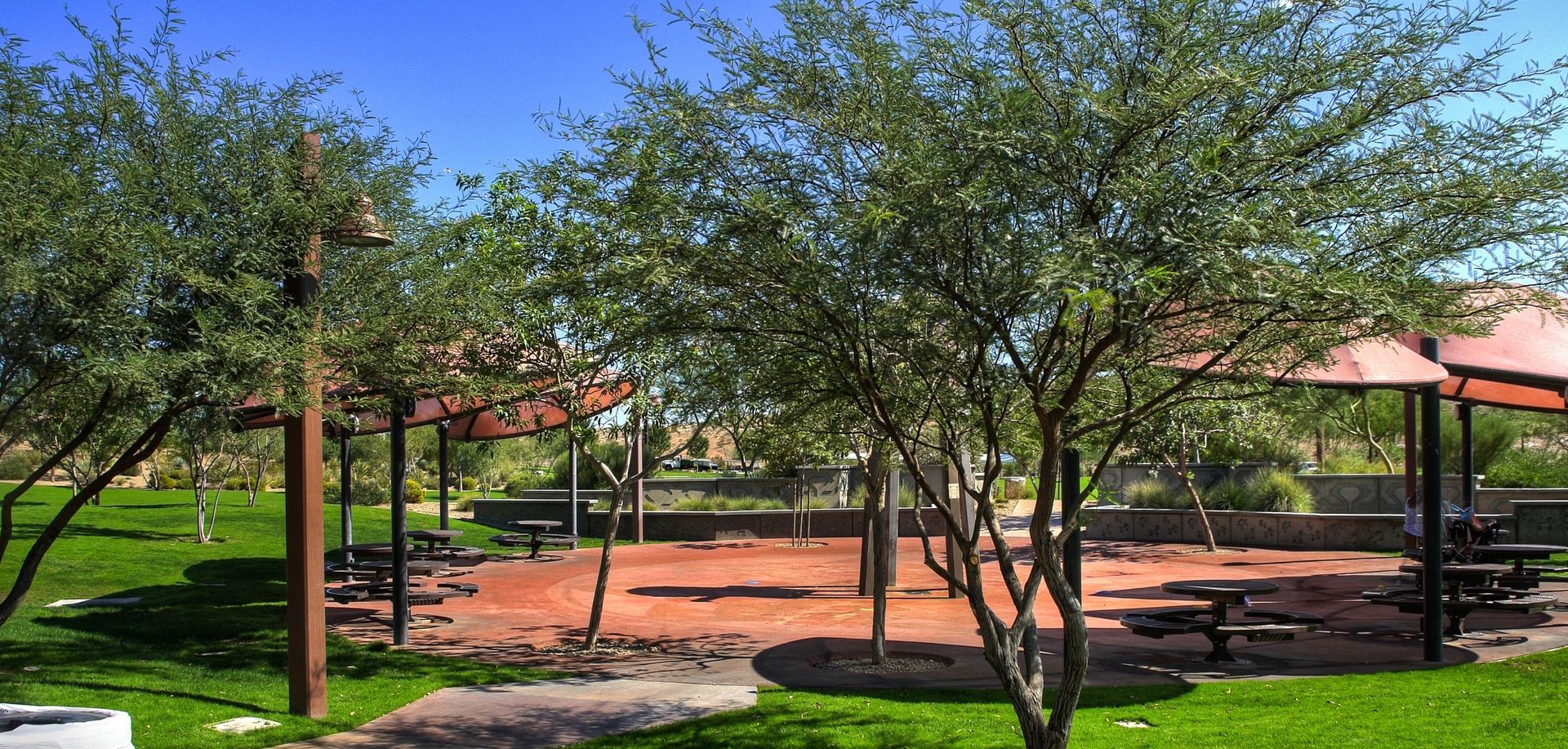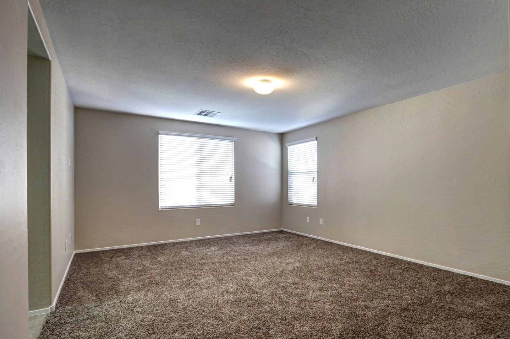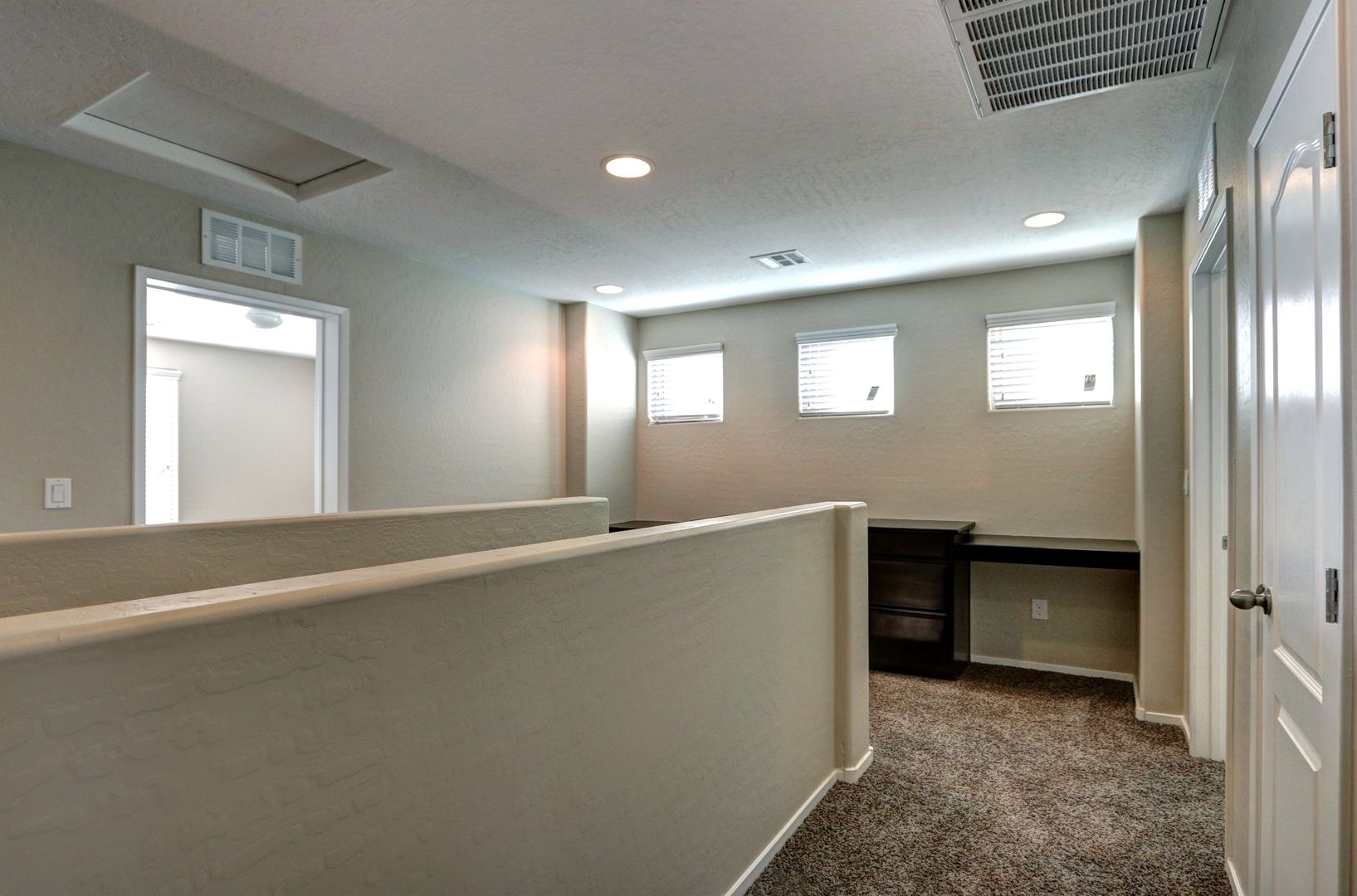 Terrific TWO STORY 3BDRs & 2.5BTHs HOME in Mountain's Edge. Entry reveals bright & open layout w/joined Family & Dining Rms enhanced w/neutral tile flooring. Galley style kitchen w/dark cabinets, granite cnts, backslash, black appliances & pantry. All BDRs are upstairs plus Laundry & built-in desk. Large MBD & en suite w/double sink, tub & separate shower. Finished backyard w/covered patio. Situated near community pool, park, walking trails & playground.