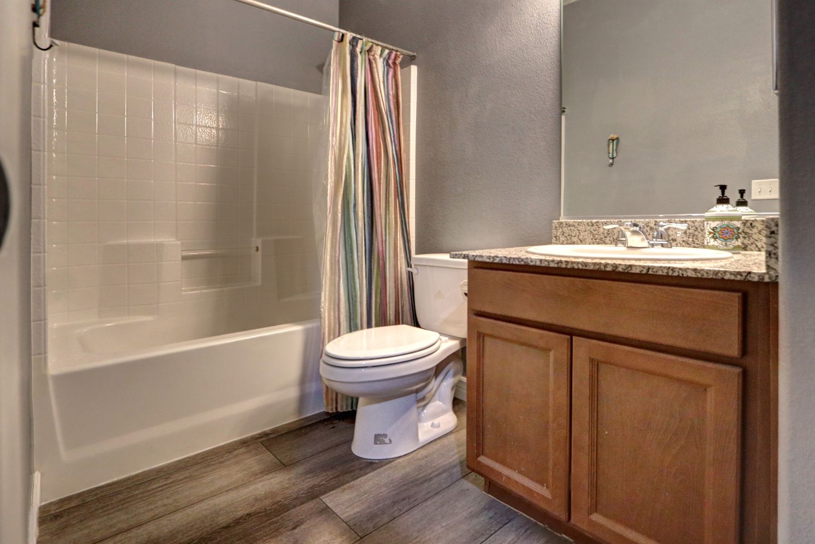 FABULOUS, IMMACULATE HOME OFFERING EVERYTHING YOU COULD POSSIBLY NEED OR WANT! WOW THIS HOME WILL NOT LAST! LOVELY WOOD FLOORS DOWNSTAIRS, LARGE OPEN KITCHEN WITH ISLAND, BUILT IN MICROWAVE, DOUBLE OVEN. NICE FLOWING FLOOR PLAN WITH CUSTOM WINDOW COVERINGS, CUSTOM TWO TONE PAINT, BEDROOM AND FULL BATH DOWNSTAIRS, LARGE LOFT UPSTAIRS. ALL BEDROOMS HAVE CEILING FANS! HUGE BACKYARD HAS A COVERED PATIO AND IS FULLY LANDSCAPED! COMMUNITY PARK COMPLETES THIS WONDERFUL HOME!